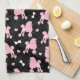 Pink Poodles and Bows Pattern Black Kitchen Towel