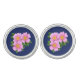 Pink Prairie Rose Floral on Navy Blue Cufflinks