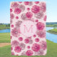 These custom ladies personalized golf towels feature pink flowers with a customizable monogram on a pink background. It's a stylish, cute gift for a golfer. It's a useful present for your mom, sister, grandma, or any lady whose hobby is playing golf.