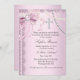 Pink Pretty Pearl Bow Cross First Holy Communion Invitation