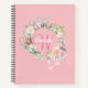 Pink Pretty Roses Floral Monogram Girly Script Notebook