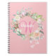 Pretty pink initial monogram notebook, featuring a beautiful white script name with a complimenting pink initial that is framed by a delicate watercolor floral rose garland on a peach pink background. Personalize to create a special keepsake gift to treasure! Designed by Thisisnotme©