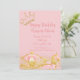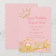 PINK AND GOLD PRINCESS BIRTHDAY INVITATION WITH CARRIAGE DESIGN, GOLD GLITTER DETAILS.
