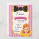 Celebrate her royal day with this pink-striped birthday invite featuring a crown, bow, and magical charm.