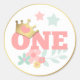 Pink Princess "One" Crown Baby Girl First Birthday Classic Round Sticker