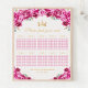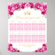This elegant and glamorous Quinceañera table seating chart features a gold crown and beautiful hot pink floral arrangements with gold confetti. The text combines handwritten script and modern sans serif fonts for a classy and sophisticated look.