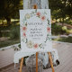 Welcome guests to your bridal shower with this beautiful sign, featuring a wreath of greenery, pink florals and white pumpkins. Add the guest of honor's name, shower date and custom welcome text using the fields provided.