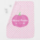 Sweet baby blanket done in pastel pink and white polka dot pattern, with graphics of a pink pumpkin, in the middle. Graphics of a white heart with an arrow decorates the pumpkin along with custom white text reading Mommy's Pumpkin.