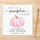 Cute baby girl shower guest book featuring a pastel pink watercolor of a pumpkin and "A Sweet Little Pumpkin Is On Her Way" written in a mix of soft grey typography and a stylish script with swashes.