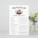 Rustic pumpkin theme baby shower baby word scramble game card featuring illustration of a pink pumpkin with faux gold glitter. The list of words on this card are all related to babies and they are scrambled. The guests are going to compete who can unscramble all of them first! ANSWER KEY: 1. car seat 2. milk 3. playpen 4. pacifier 5. diaper 6. rocking chair 7. nursery 8. baby monitor 9. swaddle 10. formula 11. rubber ducky 12. stroller.