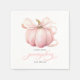 This elegant and charming baby shower paper napkin features a beautiful watercolor illustration of a cute pink pumpkin with a coquette bow ribbon, perfect for celebrating the upcoming arrival of a little one in the fall season.