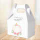 This pretty fall baby girl's baby shower favor box is decorated with lovely watercolor pink pumpkins, roses, and green foliage.
