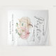 An elegant autumn-themed photo backdrop tapestry and welcome sign for your baby girl shower with "a sweet little pumpkin is on her way" in a mix of modern typography and a script with a heart swash, and watercolors of pink and cream pumpkins and floral bouquets. Personalize the mother's name and shower date in simple typography.