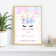 Make your party feel like a dream with this pink and purple cloud unicorn welcome sign! Featuring a soft pastel background, fluffy clouds, and a magical unicorn, this design is perfect for little girls’ birthdays, dreamy unicorn-themed parties, or pastel celebrations. Fully editable so you can customize every detail with ease.
