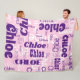 Pink Purple Custom Name Pattern Retro Fonts Fleece Blanket