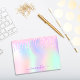 A trendy iridescent background with unicorn and rainbow pastel colors in pink, purple, mint green. Decorated with drips in pink and purple. Purple colored letters. Personalize and add your name. The name is written with a modern hand lettered style script with swashes. To keep the swashes only delete the sample name, leave the spaces or emoji's in front and after the name.