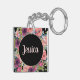 Pink and purple watercolor floral Christian Bible verse keychain, personalized on the back with your name. Psalm 46:5 "God is within her, she will not fail."