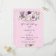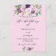 A pink background. Decorated with purple watercolored flowers and greenery. Personalize and add your names and party details.