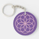 Pink and purple flower design double-sided acrylic keychain.