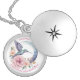 Pink Purple Flower Hummingbird Personalized Name Locket Necklace
