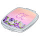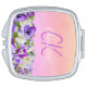 Pink purple flowers monogram name script compact mirror