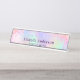 A trendy holographic background with unicorn colors and rainbow colors in pink, purple, rose gold, mint green. Decorated with faux glitter drips in rose gold, pink and purple. Personalize and add your name and title. Purple colored letters.