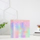 A trendy holographic colored background with unicorn and rainbow pastel colors in pink, purple, rose gold, mint green. Decorated with faux glitter drips in rose gold, pink and purple. Personalize and add a name. Golden text: School, work, study