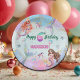 Pink Purple Glitter Mermaids 6th Birthday Party Paper Plates