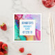 Birthday paper napkins with a fancy artistic abstract design. Watercolor painting with the colors mixing and mingling creating a nice flowing marbled pattern.