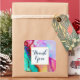 Thank you stickers with a fancy artistic abstract design. Watercolor painting with the colors mixing and mingling creating a nice flowing marbled pattern.