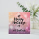 This elegant design incorporates a pink and purple gradient background and some white, foggy dots. Black Happy Holidays message, a mistletoe, a black heart and some black dots.
