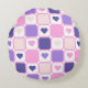 PINK & PURPLE HEARTS AND PLAID PATTERNS ROUND PILLOW