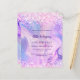 A girly and feminine 18th (or any age) birthday party invitation. On front: A holographic colored background in purple, pink. Decorated with blush pink confetti. Personalize and add a name and party details. The name is written with a hand lettered style script, purple colored letters.