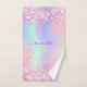 Pink purple holographic name girl bath towel set