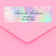 A trendy holographic background with unicorn colors and rainbow colors in blush pink, purple, mint green. Decorated with confetti, sparkles. Personalize and add your name and return address.
