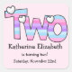 Celebrate a lovely Second Birthday with this sweet design! Features a soft pink background and the words 'TWO' in stripes of pink, purple, and blue. This design is easy to match with decorations making for a perfect birthday party celebration!