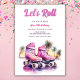 Pink Purple Roller Skate Tropical Birthday Party Invitation