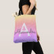 Pastel Gold, Yellow, Orange, Pink and Purple Ombre Faux Sparkle and Glitter Elegant Monogram Book Bag. This Book Bag can be customized to include your initial and first name.