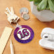 Elegant and fancy sweet 16 keychain. Designed with a background composed of pink and purple sparkling glitter gemstones. A circle frame with a faux-gold-foil border layered over top with a trendy typography graphic inside which says sweet 16.