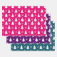 Pink, Purple & Teal Winter Christmas Tree Pattern Wrapping Paper Sheets