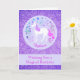 This birthday card features a pretty unicorn design with faux purple glitter. You can personalize the front of the card with a name and the text inside as well.