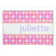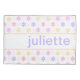 Pretty pastel small flower pattern design with custom text. This girly design features small daisy flowers of blue, light pink, yellow and white. On one side it is against a white background and on the other a brilliant pink. In the middle is a yellow bordered rectangle with space for personalized text such as a name in a light lilac purple. This lovely feminine girly pattern would really brighten up a bedroom and would make a wonderful gift with the custom text.