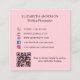 Back: Templates for your name, title, phone number, mail and website address, QR-code to your website. Facebook and Instagram icons.