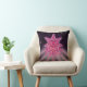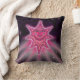 Throw pillow with an illustration of a radiant pink quasar on a starry background of black and purple. Reverse side of pillow shown here in purple but can be changed to any color of your liking.