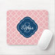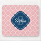 Pink Quatrefoil Pattern Navy Monogram Mouse Pad