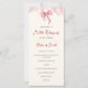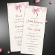 Celebrate your special day with our adorable pink bow quinceañera celebration program. This elegantly designed card features a charming pink bow at the top, adding a touch of sophistication to your event. With all the essential information beautifully displayed on both the front and back, this program ensures your guests are well-informed while enhancing the overall aesthetic of your celebration. Make your quinceañera unforgettable with this delightful keepsake that perfectly captures the spirit of your milestone. Illustrated and designed by Patricia Alvarez.