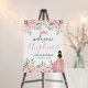 Pink Quinceañera Welcome Sign. This lovely sign features a whimsical pink floral garden theme, perfect for welcoming guests to your special day. The design showcases delicate pink roses and greenery, complemented by a sparkling pink tiara worn by a girl in a pink dress. "Welcome" is displayed in a mix of elegant script and bold serif fonts in black and pink, blending fun and sophistication.