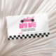 This is a Pink Race Car Checkered Race Flag Baby Shower Diaper Raffle Enclosure Card!