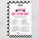This is a Pink Race Car What's In Your Phone Baby Shower Game.