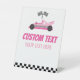Pink Race Car Racecar Custom Text Party Pedestal Sign